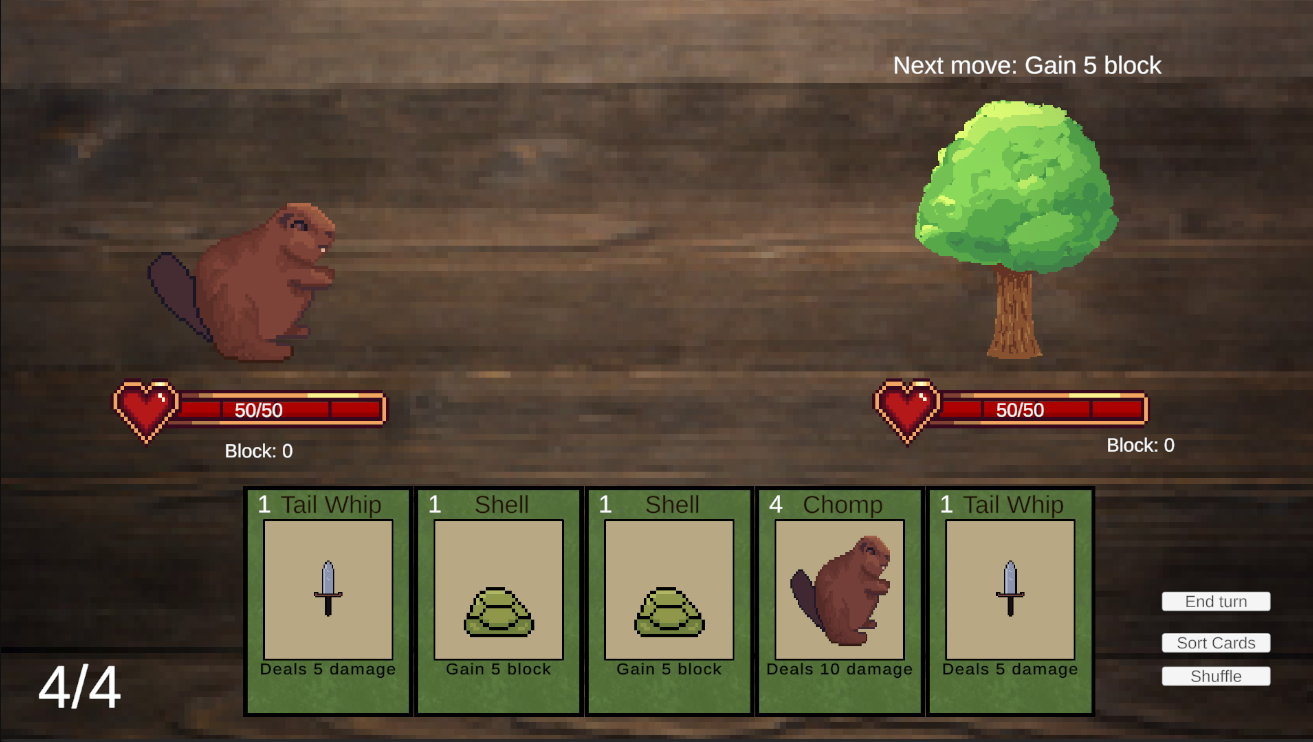 Beaver builder is a game I made in four weeks where your goal is to defeat the enemy before they kill you. You play as a beaver and fight trees. This is just a demo with one enemy.